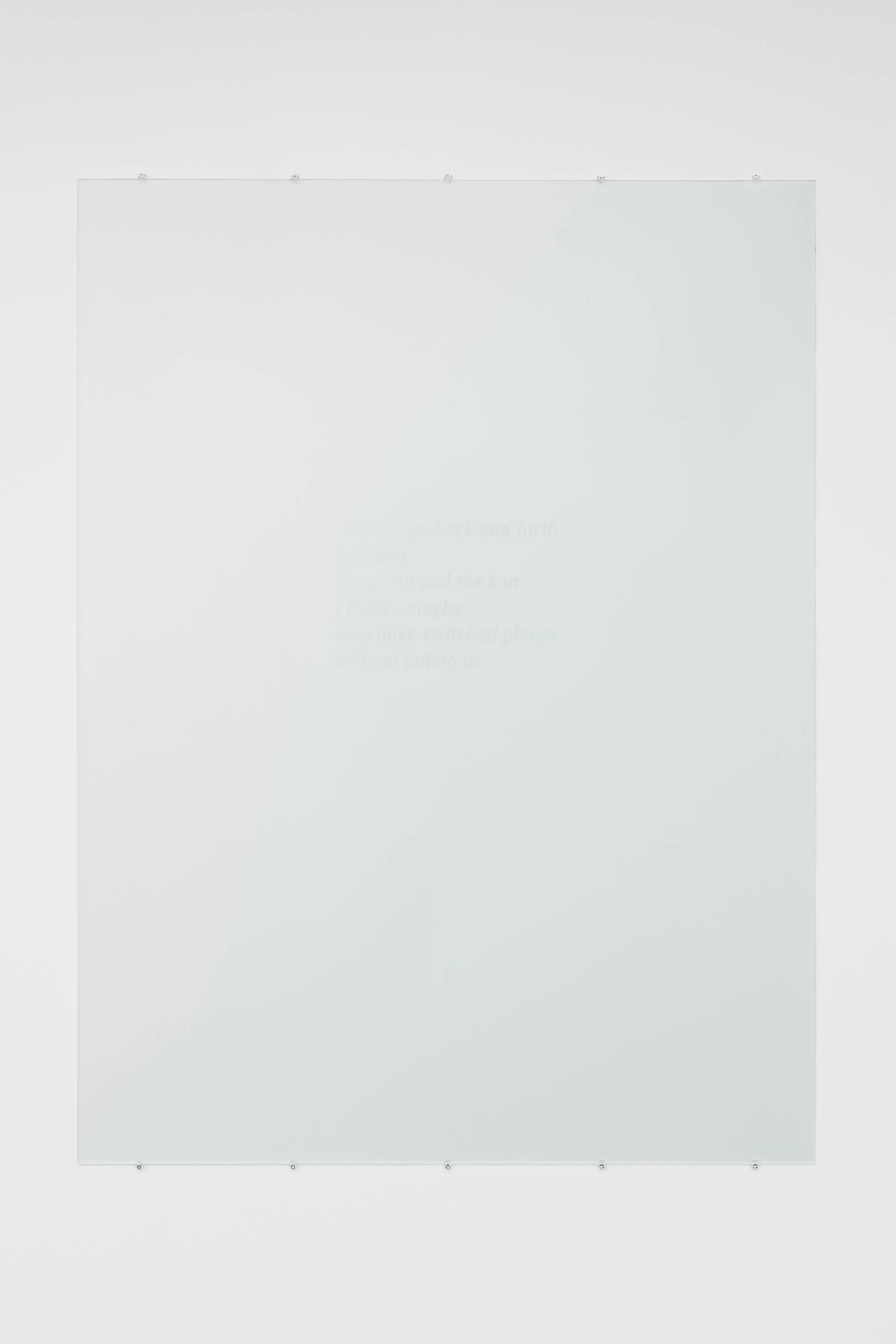 Ambient light, mat glass (120 X 160 X 0,4 cm) and varnish.
